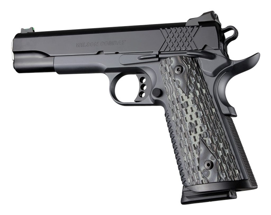 Hogue střenky pro pistole typu 1911 Officers materiál G10, Techwell zásobníková šachta, povrchová úprava chainlink