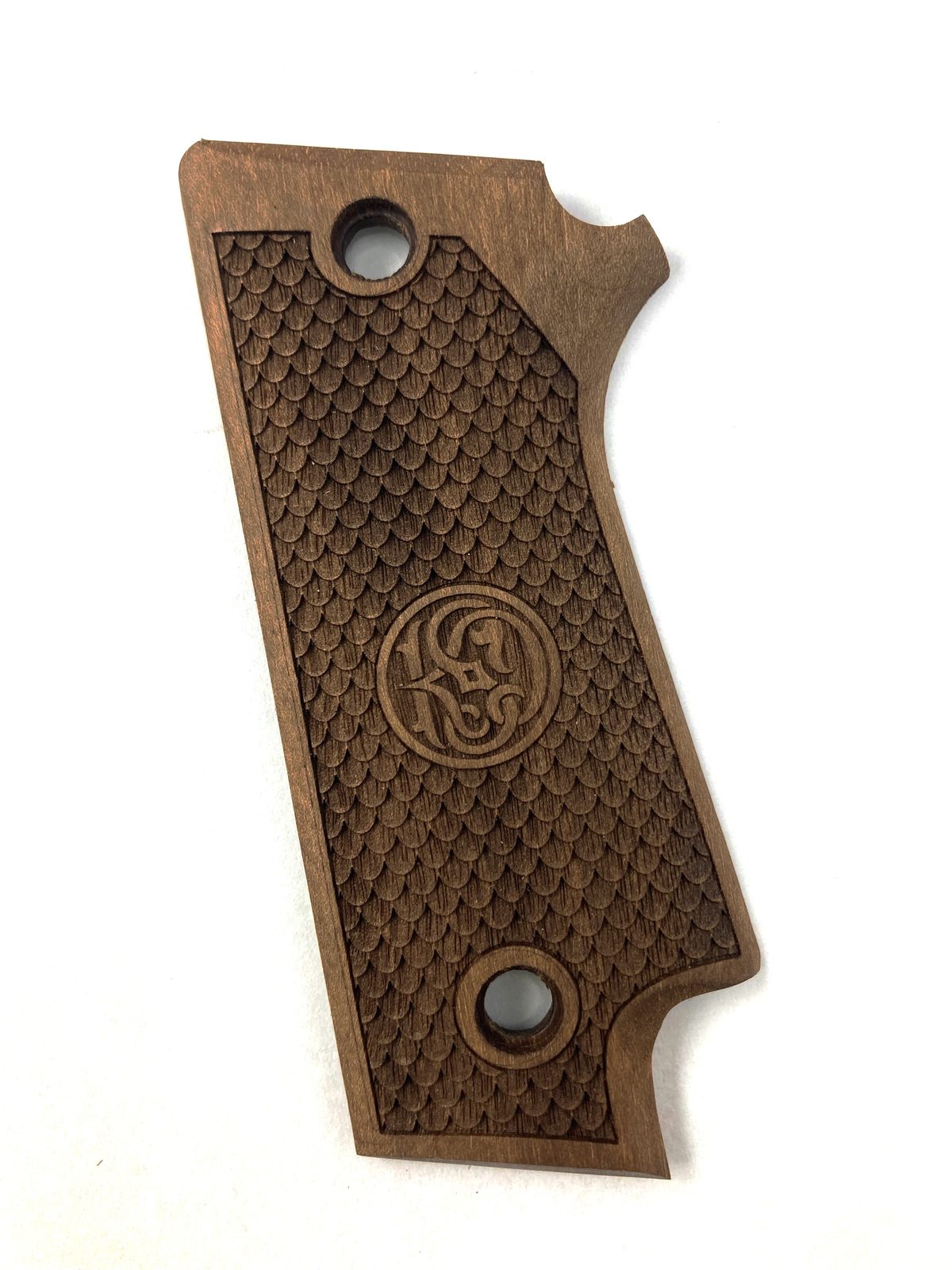 Střenky tureckého výrobce KSD pro pistole Beretta 92S s pojistkou, turecký ořech s logem 2.