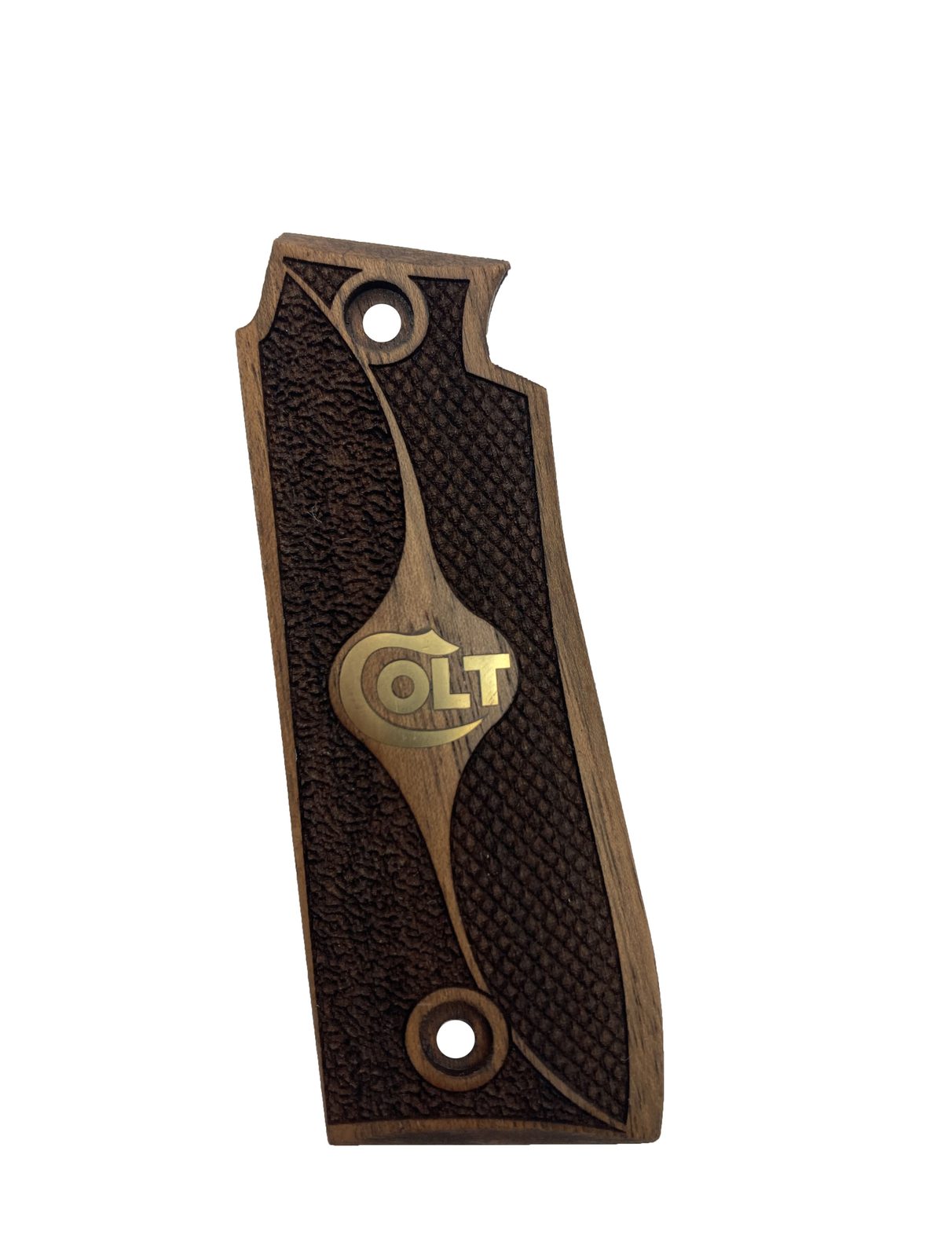 Střenky tureckého výrobce KSD pro pistole Colt Mustang Plus II turecký ořech s bronzovým logem.