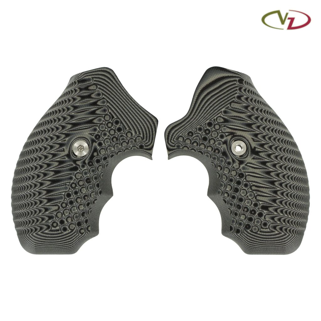 Střenky světoznámé společnosti VZ Grips pro revolvery typu Smith & Wesson J rám round butt. Materiál G10, barva Black Gray (černá a šedá). Zdrsnění je hrubé a proto vhodné pro přesnou sportovní střelbu i sebeobranu. Toto zdrsnění poskytuje střelci jistotu, že mu zbraň nevyklouzne nebo nevypadne z ruky a to i když bude mít střelec ruce splavené potem.