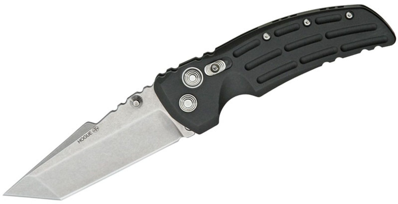 Nůž Hogue EX-01 Tanto Blade 3,5" Aluminium Black, který navrhnul Allen Elishewitz. Čepel Tanto s oboustranými palcovými čepy. Materiál čepele je z kryogenicky ošetřené nerezové oceli 154CM (tvrdost 57-59 HRC) s ručně broušeným ostřím. Zámek PushButton s manuální pojistkou pro uzamčení. Rukojeť je hliníková. Pocket clip je vpravo, střenka obsahuje průvlak pro lanyard. Celková délka nože 203 mm, délka čepele 89 mm a délka rukojeti 114 mm. Vyrobeno v USA.