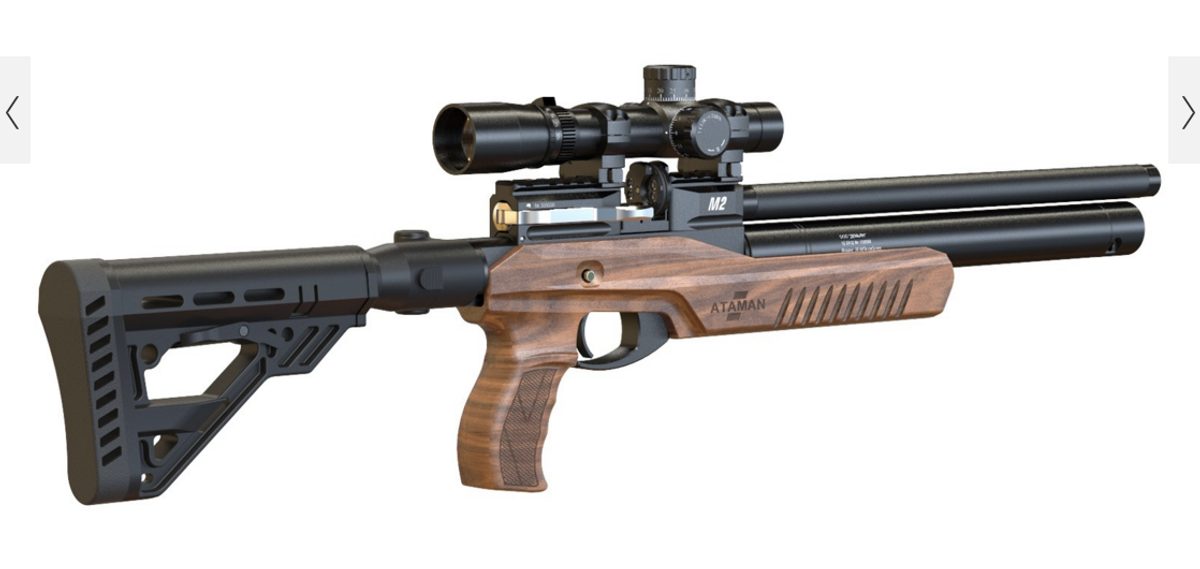 Kompaktní PCP vzduchovka Ataman M2R Carbine Ultra Compact 6,35mm s regulátorem a zásobníkem na 8ran. Volně plovoucí hlaveň Lothar Walther o délce 390mm. Montážní lišta weaver pro montáž puškohledu. Plně nastavitelná spoušť. Sklopná pažba z ořechového dřeva. Kartuše s manometrem v přední části má objem 130cm3 se plní pomocí Quickfillu tlakem až do 300BAR. Manuální pojistka, celková délka 93cm, hmotnost zbraně 2,8kg. Vzduchovka nemá klasická mířidla.
