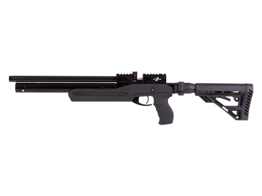 Kompaktní PCP vzduchovka Ataman M2R Carbine Ultra Compact black 4,5mm s regulátorem a zásobníkem na 12ran. Volně plovoucí hlaveň Lothar Walther o délce 390mm. Montážní lišta weaver pro montáž puškohledu. Plně nastavitelná spoušť, sklopná pažba. Kartuše s manometrem v přední části má objem 130cm3 se plní pomocí Quickfillu tlakem až do 300BAR. Manuální pojistka, celková délka 93cm, hmotnost zbraně 2,7kg. Vzduchovka nemá klasická mířidla.